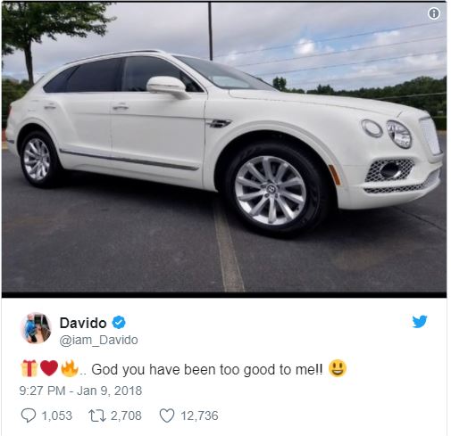 Nigerian singer, David 'Davido' Adeleke has kicked off the New Year with an ostentatious gift to himself after a busy and successful 2017.
