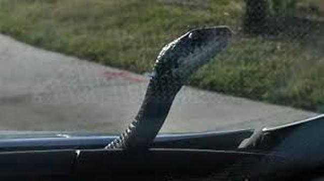 A man was left in shock after a dangerous snake emerged from the car bonnet before wrapping itself around his side mirror.