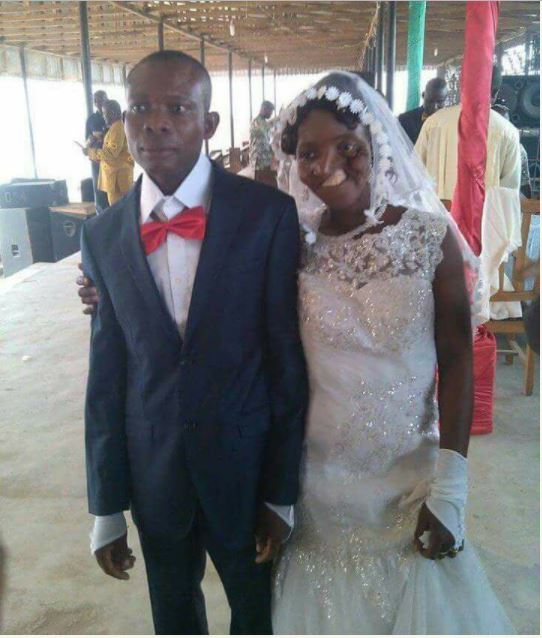 The woman who was disfigured by an accident got married recently to her man and has been hailed by online users after the wedding picture emerged online.