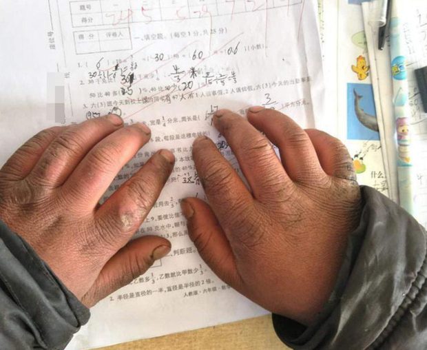 The boy sadly does not live with his parents, as they are both working in larger cities to earn higher wages. He is living with several siblings and elderly relatives. Fu said the school provides him and others like him with breakfast, but admitted that their classrooms were not yet equipped with heating due to a lack of funding.