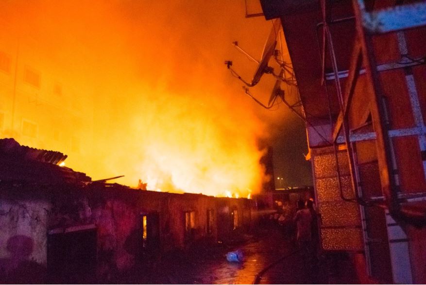 A massive building within the Lagos metropolis was hit by an inferno thereby causing panic among residents avoiding being hurt.