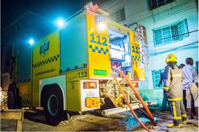 The LRU team, the LAGOS STATE FIRE SERVICE and the community youths joined hands in putting out the fire completely.