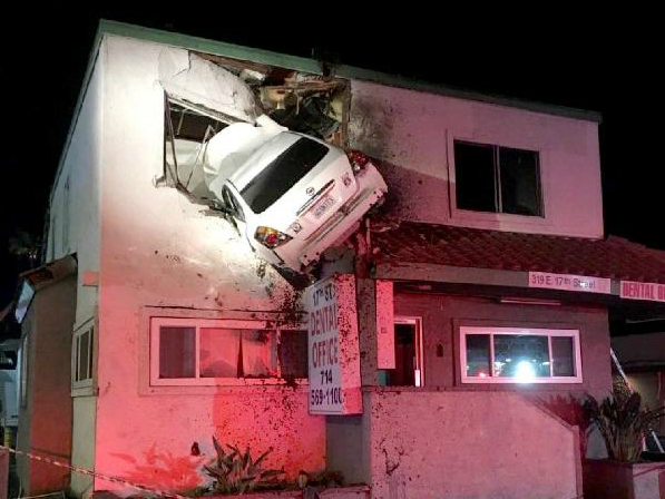 A car in Southern California hit a centre divider, went airborne and plowed into the second floor of a dentist’s office, according to