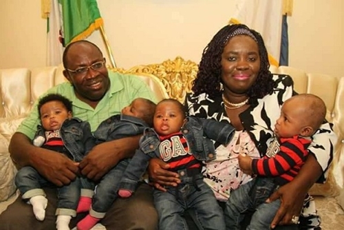 Bayelsa State Governor, Dr. Seriake Dickson and his wife Dr (Mrs) Rachel who welcomed a set of quadruplets (a boy and three girls) at a hospital in America in 2017, have celebrated their 1-year birthday in style.