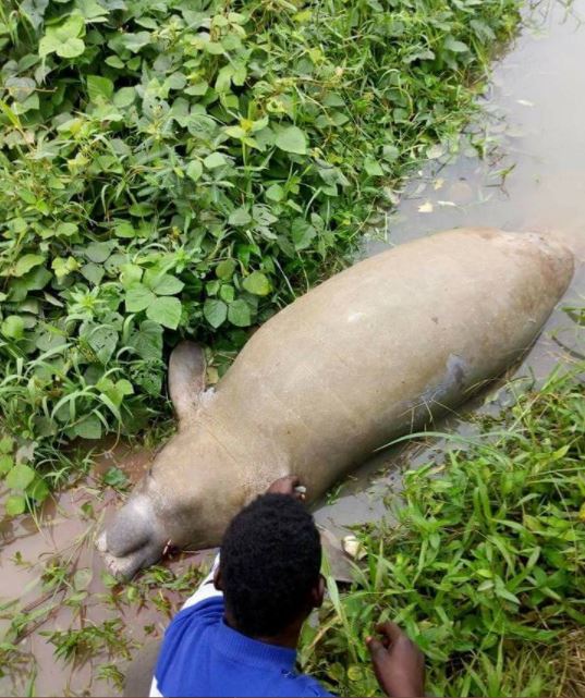 A group of villagers in Sapele area of Delta State caught this creature which appears to be a West African Manatee or sea cow.