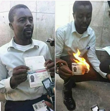 Angered by President Donald Trump's contemptuous remarks referring to some African and Latin American countries as 'shitholes' a Professor in Haiti, Kersaint Berlins Belande, resident of the city of Gonaives, has set his American visa ablaze in protest.