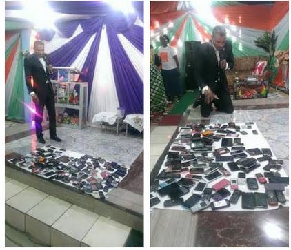 A Nigerian pastor ordered his church members to gather their phones during a service, on which he prayed on for helpers and some of the phones started getting instant calls.