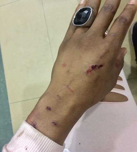 I held firmly to his shirt since that was the only thing I could do as a woman at that time, but the man entered his Car, started the ignition and driving with me holding on to his shirt, his back tire even Climbed my Feet, thank God I was wearing a Boot that protected me from Getting hurt. And as he was driving away he was winding up his glass squeezing my hands to the door panel, I managed to pull of my hands. And I went thru the back Window to stop him and he started winding up again, squeezing my hands I was forced to pull off my hands from the Window before he cuts it, in the process the back glass broke and I feel to the floor. Before I could get up, the guy stopped his car ,ran to my own car and Took My bag, My phones I ran after him to collect my bag, this man held my hands and stabbed me Multiple Times with his Keys.