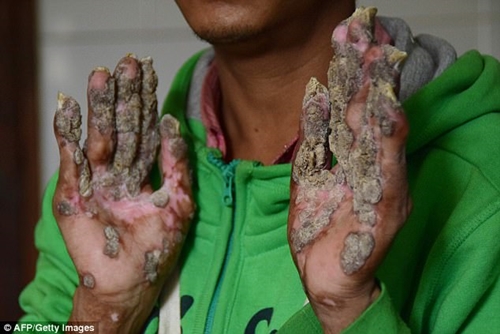 Bajandar, who was described by a doctor as the 'most loved' patient in this hospital, initially thought the warts were harmless until they grew and covered his hands and feet, forcing him to stop work.