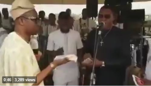 The video shows a man doing something unusual at an event. The man is seen standing and holding a wad of cash before a musician who was performing at the party. However instead of spraying the money on the singer, the man did something else.