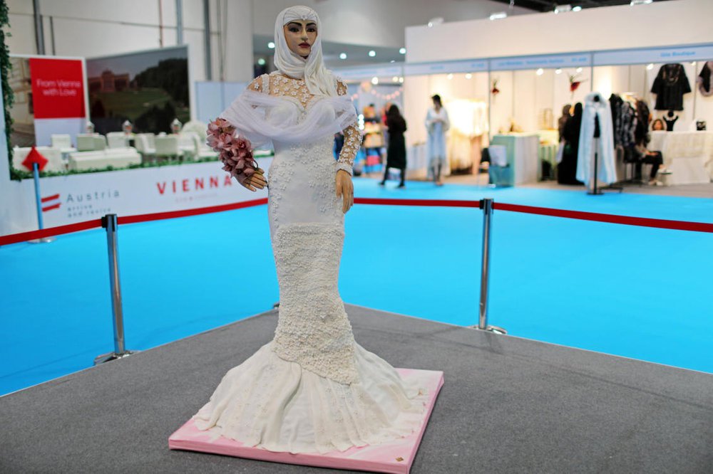 The six-foot-tall cake took more than 10 days to make and weighs 220 pounds. The cake bride was unveiled at the BRIDE show at Dubai World Trade Centre.