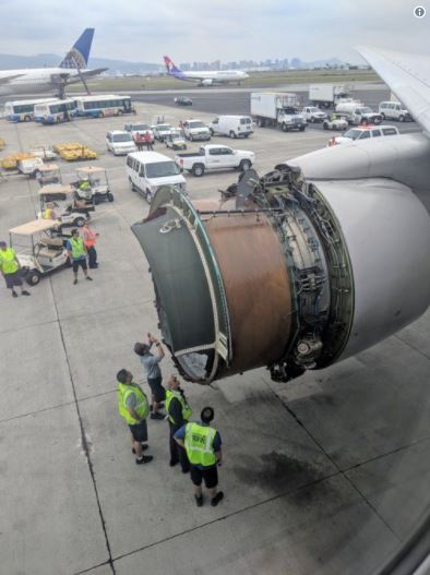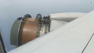 Footage shows the protective covering from the engine had completely fallen off during the tense flight.