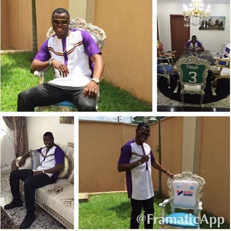 Ex-Super Eagles player Taye Taiwo is one of the richest Nigerian footballers. He has got an expensive fleet of cars, a jaw-dropping house, expensive shoes, designer wrist watches,customized caps, and other accessories.The furniture in his room are customized with his name.