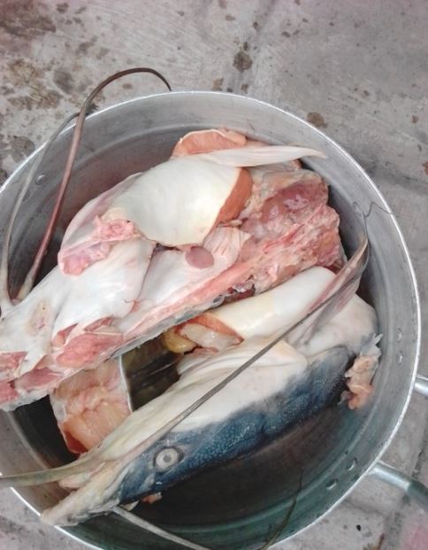 The buyer was quick to cut the aquatic animal into different sizes to accommodate it in a cooking pot.