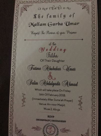 Below is the couple's invitation card which was shared online.