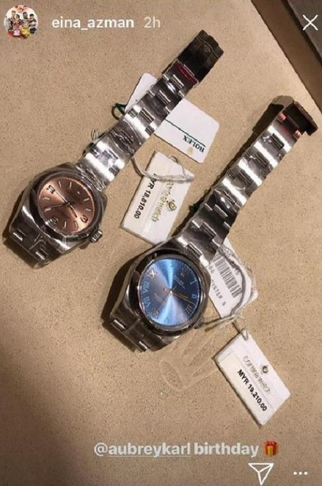 Actress and beauty entrepreneur, Eina Azman recently celebrated the second birthday of her twin children, Arianna Aubrey and Karl Kareef, by buying them a Rolex watch each.