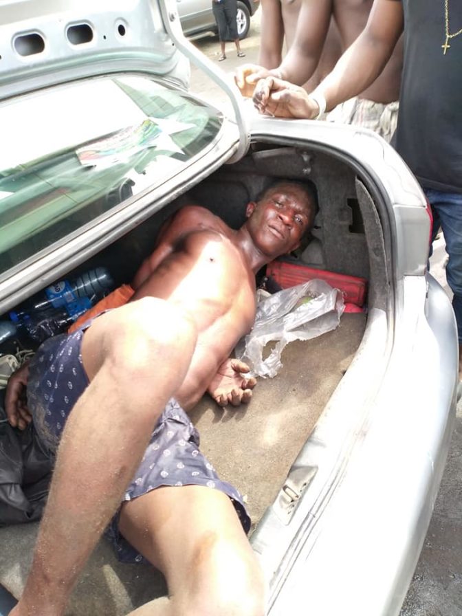But, things turned around as he was caught red-handed by vigilant residents. He was tied up and beaten mercilessly before being forced into the boot of a car where he was taken to a police station.