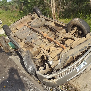 Just as we were approaching ORE in Ondo State, One of the back tires bursted. The driver lost control...