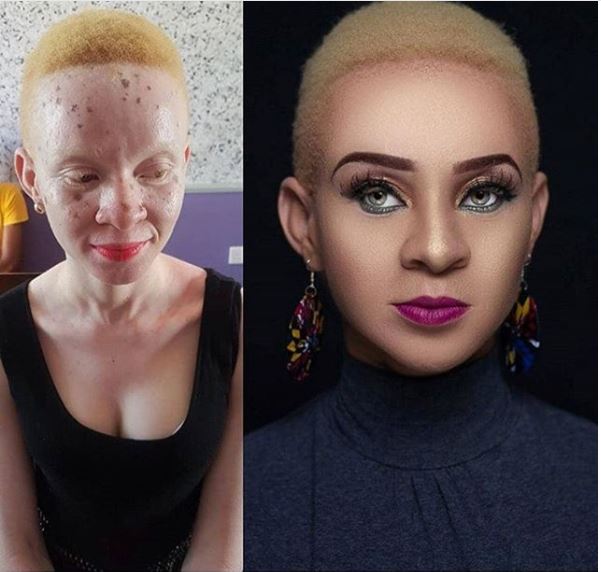 A lady with albinism named Magreth Salutary has been transformed into a beauty queen with the expert hands of professionals from the Flolina Beauty Make-up which is not located in Nigeria.