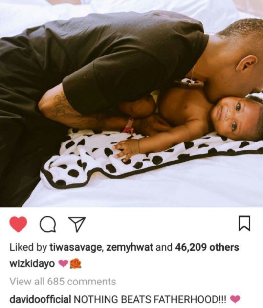 Davido also joined the lost of persons who hailed Wizkid and his kids. The "Fall" crooner stormed Wizkid's comment section to make his statement.