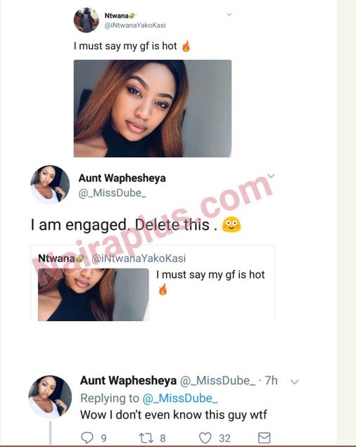 A Twitter user named Ntwana Yakokasi was given a public embarrassment on social media after a girl he lied about dating confronted him.