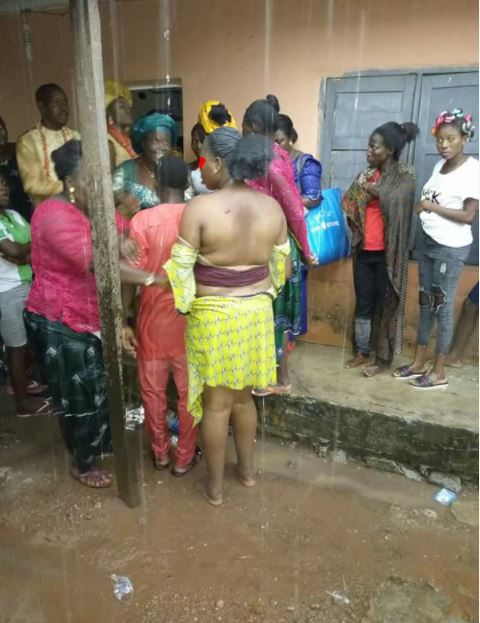 She was beaten by a mob under the rain and disgraced in public as seen in the pictures.