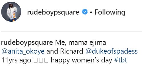 Paul, who now goes by the stage name King Rudy or Rude Boy, after the breakup of the P-Square band, revealed that the photo was taken as may as eleven years ago.