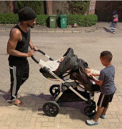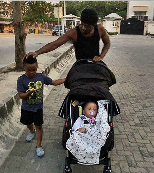 Singer, Paul Okoye of the defunct music duo, P-square is serving us some hot daddy goals as he shares pictures of him taking his children for a walk in the streets.