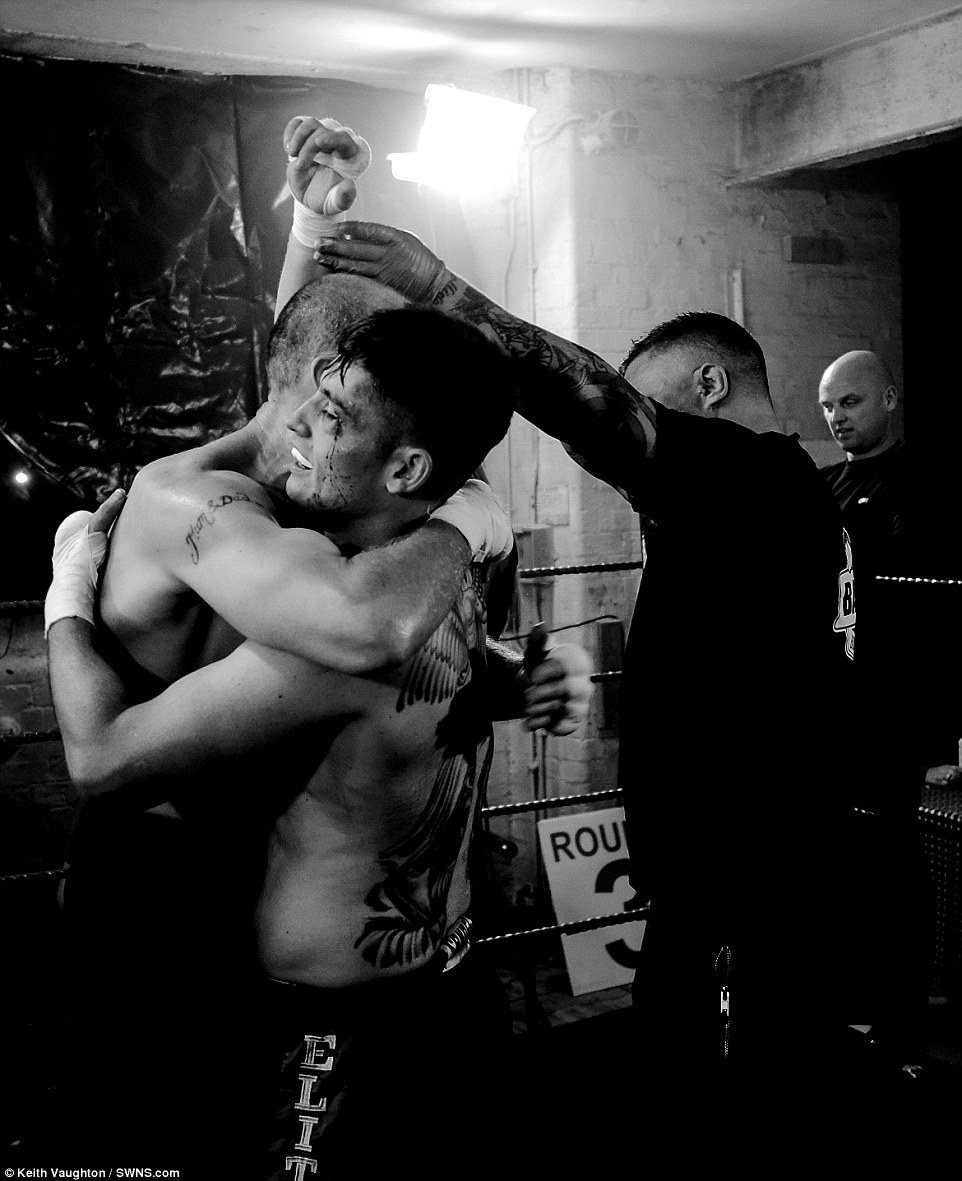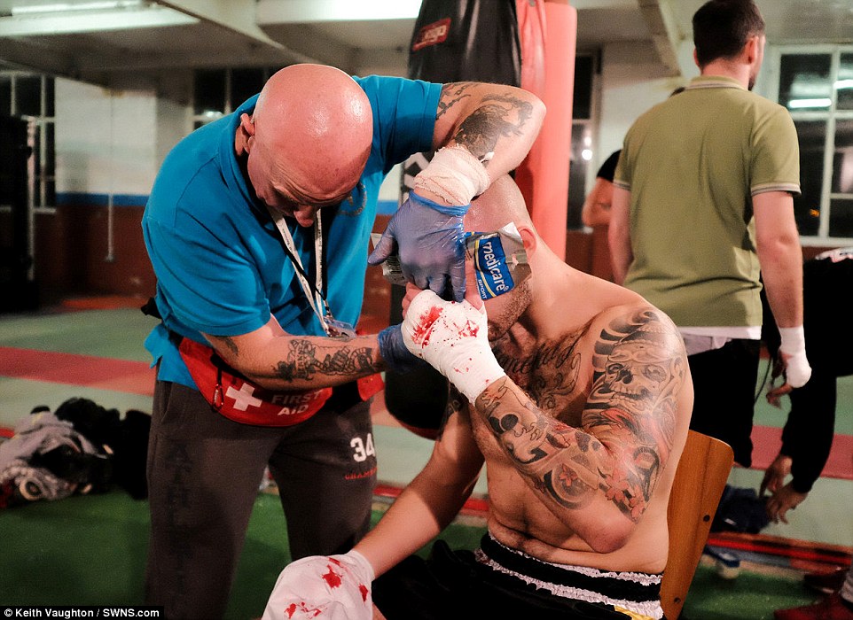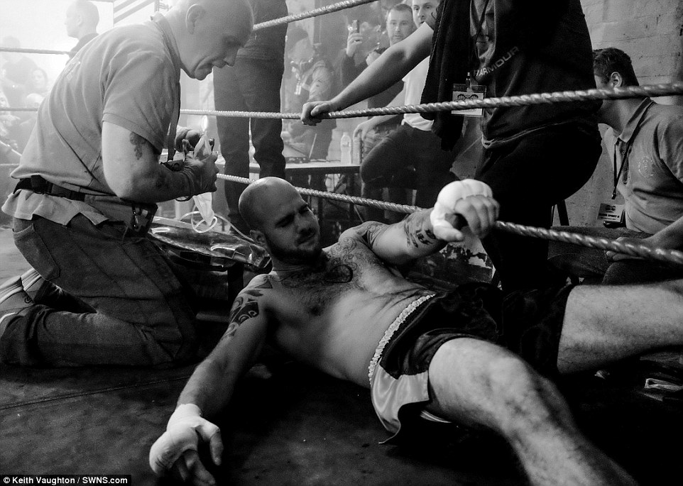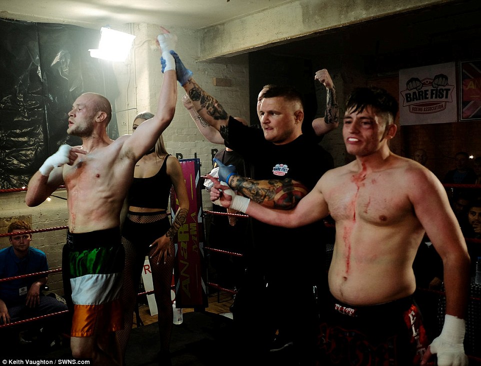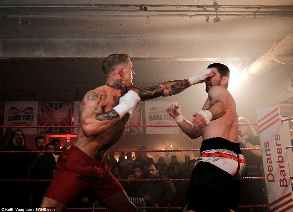 They were taken at the Bare Fist Boxing Association's Blood Sport 2 event, which was held at an old cotton mill in Bolton, Greater Manchester.