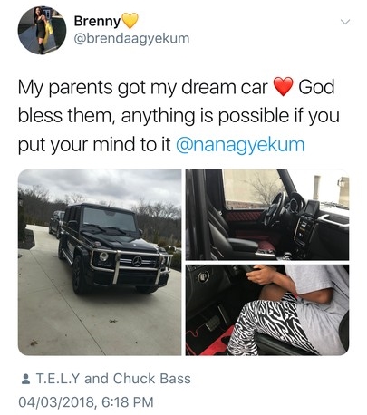 A Twitter user identified as Brenny (@brendaagyekum) has become an internet sensation after she took to the social networking platform to share some photos of her latest luxury gift.