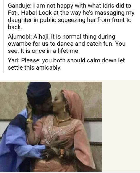 This photo was taken at the wedding ceremony of governors' children Idris and Fatima with social media users making jokes about it.
