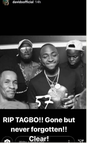 "R.I.P Tagbo!!, gone but never forgotten!!" Davido wrote on a throwback photo of Tagbo, himself and friends.