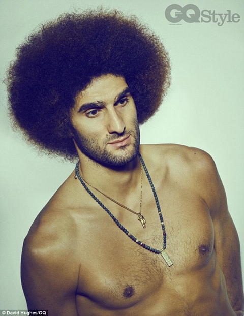 Manchester United midfielder, Marouane Fellaini who is always recognisable for his trademark hairstyle, and often dominates the centre of the pitch with his tall stature and distinctive Afro, has undergone a photo shoot with GQ magazine to show himself in a brand new light.
