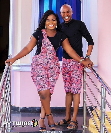 In other photos, the couple rocked marching pairs of pink Ankara prints. The bride-to-be dressed Ankara dungarees with t-shirt while Moses dressed in ankara shorts with black t-shirt.