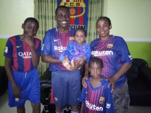 Eberiye,in the spirit of celebration, ensured that his whole family including his baby daughter wore Barcelona jerseys to rejoice after the Spanish club’s Champions league qualification.