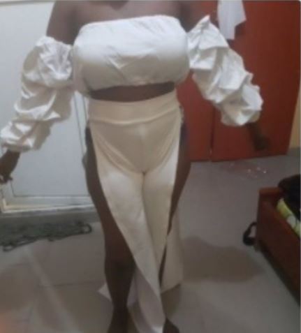 Apparently, her good friend paid N10,000 to the tailor who had promised to recreate a crop top and high slitted palazo look.