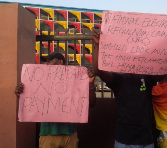 Residents of Ago Palace way, early this morning stormed the Okota office of Ikeja Electricity Distribution Company (IKEDC) along Cele road in protest demanding Prepaid meters.