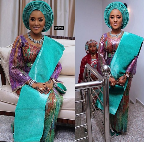 Fatima looked beautiful in her Deola Sagoe attire while posing with family and friends. Former First lady of Nigeria, Mariam Abacha; First Lady of Niger State, Dr. Amina Abubakar Bello; First lady of Kano State, Dr. Hafsatu Abdullahi Granduje; Hajiya Aisha Babangida and many others attended the ceremony.