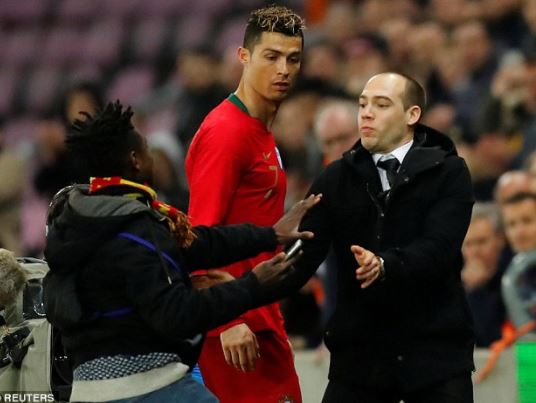 Ronaldo looked nonplussed about the man’s gesture before he was substituted in the 67th minute – even then one fan tried to grab him for a photograph as he walked to the players’ tunnel.