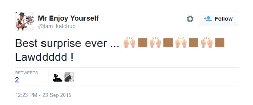 'Show me yur Rozay' crooner, Ketchup, has taken to his Twitter page to show off his new Range Rover SUV with customized plate number, captioning it; "Best surprise ever, Lawdddd."