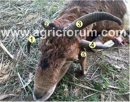 In a rare case of genetic disorder, a male sheep born normally has grow up to develop five (5) horns instead of two an average ram has.