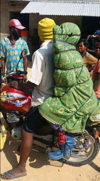 Kasirim explained that "boda boda" riders i.e commercial motorcycle riders are employed to carry dead bodies to mortuary by tying the corpses behind them on the bikes. They then ride along the road to carry out the assignment.