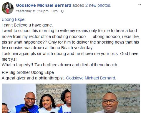 Ubong Ekpe, reported to be the branch manager of Skye Bank in Uyo, Akwa Ibom state, and his brother died after drowning in a Beach.