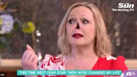 The inspirational guest was explaining how ITV's This Time Next Year had helped transform her face, when she reached up and showed the nose was cleverly attached to her face by magnets.