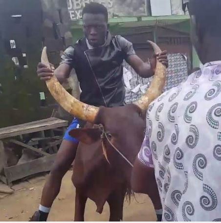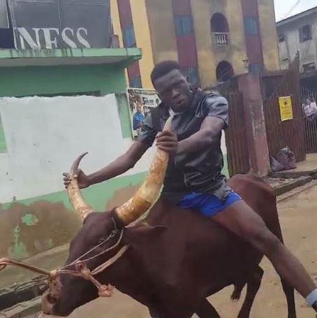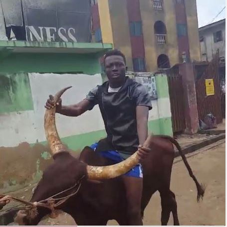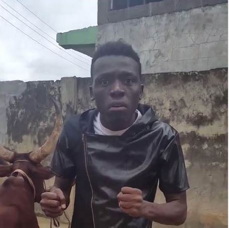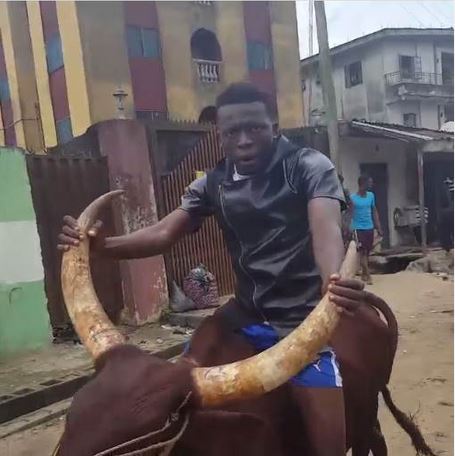 Comedian Akpororo aka Akpos said he needed to go to Warri. Unfortunately, he didn’t have money to buy a car or a horse. so he bought a cow and took an insane ride on it, heading to his destination.