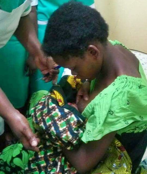 According to the social media user who shared the photos and didn't disclose where it happened, the girl gave birth to a 'monster' as a question was asked what could have caused such strange deformity.