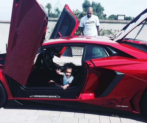 No doubts, what belongs to daddy automatically belongs to his baby. U.S Singer, Chris Brown recently bought himself a brand new Lamborghini Aventador SV and let baby, Royalty take a ride in it. So cute!