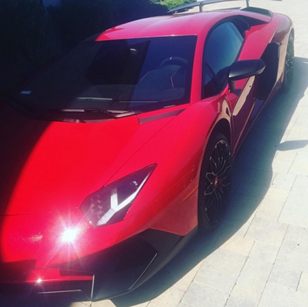 Chris Brown's babay, Royalty, pictured on riding on his daddy's new Lamborghini Aventador