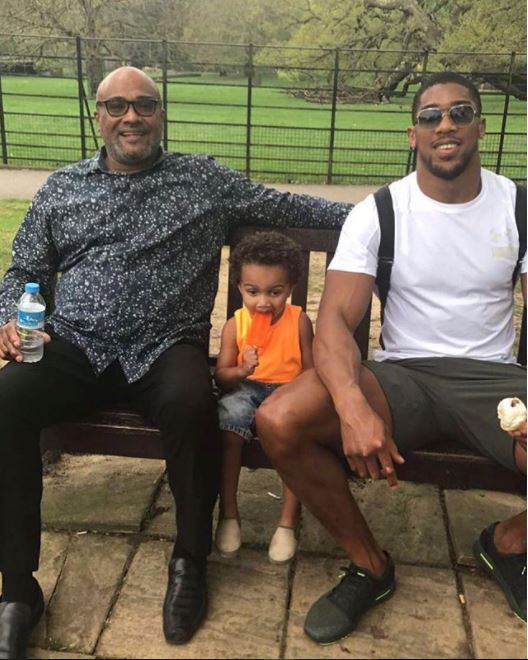 The boxer shared a photo of himself with his son posing with his father as the three of them strike a pose for the camera. Joshua's little boy is sandwiched between him and his father while the two older men stare directly at the camera with beaming smiles on their faces.