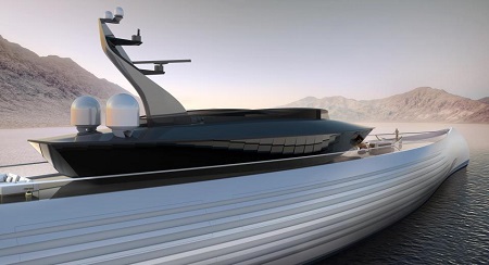 The exterior design is styled to blend with the interior, and is described as "inherently flexible" so that the yacht can be designed in any size from 80-115 metres in length.